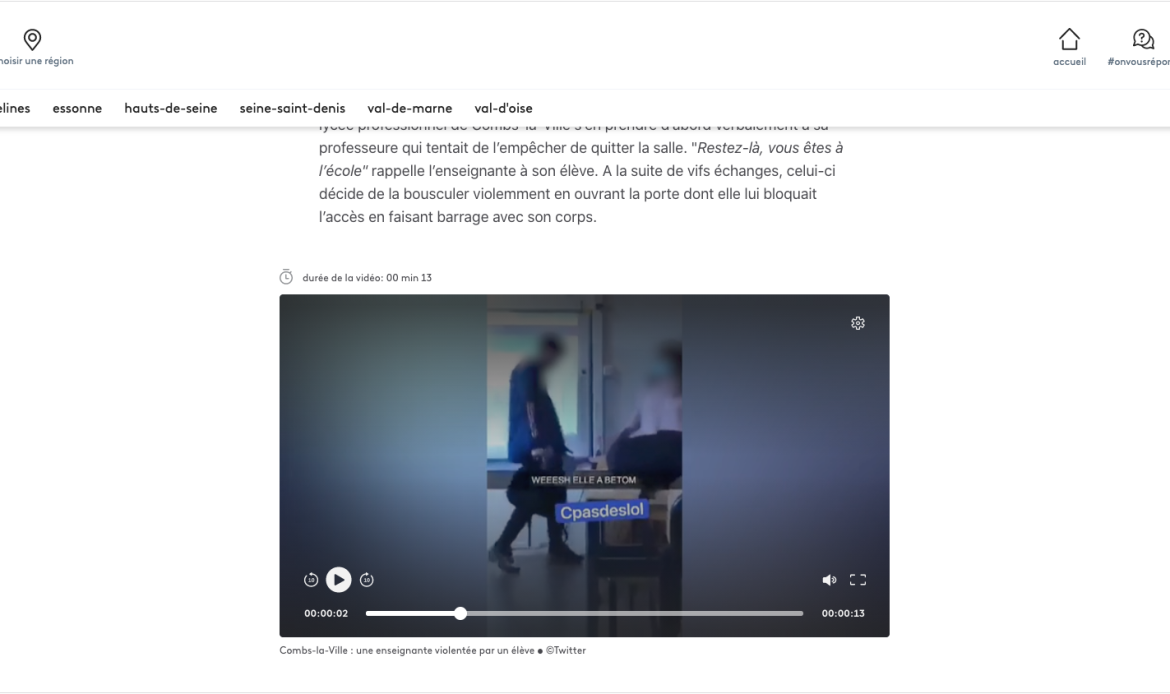 Le cabinet d’avocat de Maître Avner Doukhan avocat pénal a été interviewé par FRANCE 3 au sujet de la vidéo de l’enseignante bousculée par un élève dans un lycée professionnel.